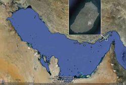 موقع جزيرة هنگام بالقرب من مضيق هرمز.