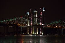 The bridge is equipped with LED lights for the roadways and structures. The lights can be changed to a variety of colors for decorative purposes on major holidays such as Memorial Day and Christmas, traditional dates such as Mother's Day, Father's Day and St. Patrick's Day, and special commemorations throughout the year. The lighting system reputedly has the ability to be synced to music, although it has yet to be demonstrated.[70]