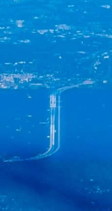 The new Tappan Zee Bridge is composed of two cable-stayed decks and has a total length of 16،368 ft (4،989.0 m; 3.1 mi; 5.0 km).[2][53] The main span of both decks is 1،200 ft (370 m) and is approached on either side by 515-قدم-long (157 m) side spans.[64][65] Each deck carries four lanes of traffic in one direction, plus inner and outer shoulders.[65] The clearance below is 139 ft (42 m).[3] Upon completion, the new Tappan Zee Bridge became one of the widest cable-stayed bridges in the world, having a combined width across both decks of 183 أقدام (56 m).[3] The new spans equal the width of the relatively short-span, cable-stayed Leonard Zakim Bridge in Boston.[66] Turkey's 3rd Bosphorus bridge, completed in 2016, has a single deck about 192 أقدام (59 m) wide. The new Tappan Zee Bridge is intended to last at least 100 years.[21]