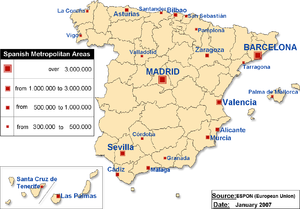 - ^ Ruiz, Francisco (2007). "Población de las áreas urbanas y metropolitanas" (xls). Población de España - datos y mapas (in Spanish). Alarcos Research Group. Retrieved 2008-12-10.