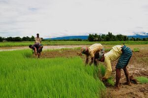 During the annual monsoon period, the rivers of Bangladesh flow at about 140،000 cubic metres per second (4،900،000 cu ft/s), but during the dry period they diminish to 7،000 cubic metres per second (250،000 cu ft/s). Because water is vital to agriculture, more than 60% of the net arable land, some 91،000 متر كيلومربع (35،000 sq mi), is cultivated in the rainy season despite the possibility of severe flooding, and nearly 40% of the land is cultivated during the dry winter months. Water resources development has responded to this "dual water regime" by providing flood protection, drainage to prevent over flooding and waterlogging, and irrigation facilities for the expansion of winter cultivation. Major water control projects have been developed by the national government to provide irrigation, flood control, drainage facilities, aids to river navigation and road construction, and hydroelectric power. In addition, thousands of tube wells and electric pumps are used for local irrigation. Despite severe resource constraints, the Government of Bangladesh has made it a policy to try to bring additional areas under irrigation without salinity intrusion.