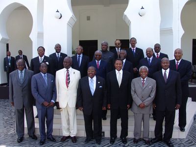 الصف الأول (ش-ي) * مواي كيباكي، رئيس كنيا * روبرت گابرييل موگابه، الرئيس التنفيذي لزيمبابوه * دانيال تورويتيتش أراپ موي، الرئيس السابق لكنيا * بنجامين وليام مكاپا، الرئيس المغادر لتنزانيا * جكايا مريشو كيكوته، الرئيس المقبل لتنزانيا * علي حسن مويني، الرئيس السابق لتنزانيا * يوِري كاگوتا موسڤني، رئيس اوغندا