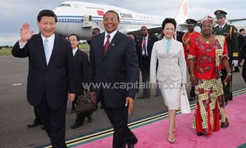 الرئيس التنزاني جكايا كيك‌وته يستقبل الرئيس الصيني شي جين‌پنگ، الذي قرر أن تكون تنزانيا ثاني زيارة خارجية له بعد توليه رئاسة الصين. وكان ذلك في 25 مارس 2013.