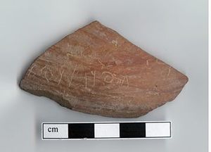 Potsherd inscribed with the two names "alwt" and "wlt", etymologically related to the name Goliath