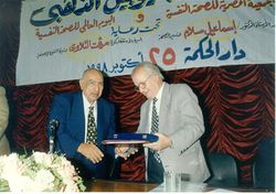 تكريم د. جمال أبو العزايم (اليسار) في اليوبيل الذهبي لجمعية الصحة النفسية واليوم العالم للصحة النفسية، 1998.