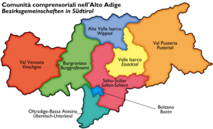 Eisacktal/Valle Isarco | Brixen/Bressanone | 624 كم² | 49,840 |