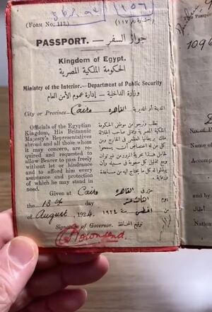 جواز سفر مواطن مصري عام 1924 الدول التي يدخلها دون تأشيرة هي ألمانيا وفرنسا وبريطانيا وإيطاليا وبلجيكا وتركيا وفلسطين وسوريا وكتب عليه: "نرجو من كل من له اختصاص أن يسمحوا لحامل هذا بحرية المرور من غير توان مع تذليل كل صعوبة في سبيله وأن يبذلوا له كل ما يحتاج إليه من مساعدة"