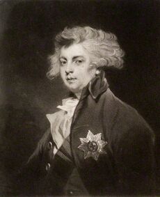 The Prince of Wales—though offended by Pitt's boldness—did not lend his full support to Fox's approach. Prince George's brother Prince Frederick, Duke of York and Albany, declared that George would not attempt to exercise any power without previously obtaining the consent of Parliament.[21] Following the passage of preliminary resolutions Pitt outlined a formal plan for the regency, suggesting that Prince George's powers be greatly limited. Among other things, George would not be able either to sell the King's property or to grant a peerage to anyone other than a child of the King. Prince George denounced Pitt's scheme, declaring it a "project for producing weakness, disorder, and insecurity in every branch of the administration of affairs."[22] In the interests of the nation, both factions agreed to compromise.[18]