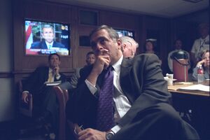 Tenet held the position as the DCI from July 1997 to July 2004, making him the second-longest-serving director in the agency's history—behind Allen Welsh Dulles—as well as one of the few DCIs to serve under two U.S. presidents of opposing political parties. He played a key role in overseeing intelligence regarding weapons of mass destruction in advance of the Iraq War. A 2005 Inspector General's report found that Tenet bears "ultimate responsibility" for the United States intelligence community's failure to develop a plan to control al Qaeda in the lead-up to 9/11.[2] Tenet has been criticized for personally authorizing the CIA's use of brutal and ineffective torture techniques during his tenure, in contravention of international law,[3][4][5][6][7][8][9] something which he has repeatedly denied.[10]