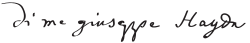Haydn's signature on a musical work. He writes in Italian, a language he often used professionally: di me giuseppe Haydn, "by me Joseph Haydn".