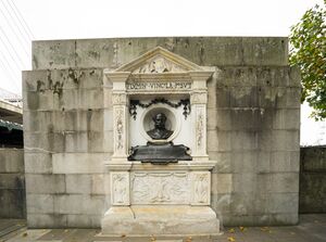 A Greater London Council blue plaque commemorates him at 17 Hamilton Terrace in St John's Wood in North London,[14] as well as a formal monument on the Victoria Embankment by the River Thames in central London. In July 2020, the City of London Corporation announced that a new public space west of Blackfriars Bridge, formed following construction of the Thames Tideway Scheme, would be named the Bazalgette Embankment.[15]