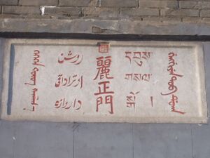 When the Qing conquered Dzungaria in 1759, they proclaimed that the new land was absorbed into China (Dulimbai gurun) in a Manchu language memorial.[18][19][20] The Qing expounded on their ideology that they were bringing together the "outer" non-Han like the Mongols and Tibetans, together with the "inner" Han Chinese, into "one family" united in the Qing state, showing that the diverse subjects of the Qing were all part of one family, the Qing used the phrase قالب:Zhp or قالب:Zhp, to convey the idea of a unification of the different peoples.[21] A Manchu language version of a treaty with the Russian Empire concerning criminal jurisdiction over bandits called people from the Qing as "people of the central kingdom (Dulimbai gurun)".[22][23][24][25] In the Manchu official Tulisen's Manchu language account of his meeting with the Torghut Mongol leader Ayuka Khan, it was mentioned that while the Torghuts were unlike the Russians, the "people of the Central Kingdom" (dulimba-i gurun) were like the Torghut Mongols, and the "people of the Central Kingdom" referred to the Manchus.[26]