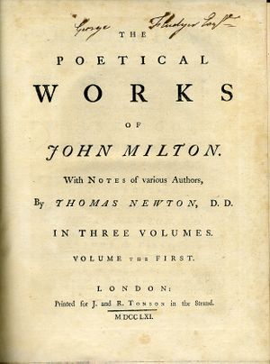 - Milton, John. The Verse, "Paradise Lost". London, 1668.
