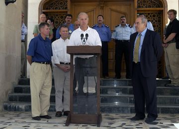 بدلاً من الاستمرار في النهج الحالي أو الانسحاب، دعت الخطة إلى "طريق ثالث": تأسيس فيدرالية عراقية وإعطاء الأكراد والشيعة والسنة "مساحة من الحرية" في مناطقهم.[17] في سبتمبر 2007، وافق مجلس الشيوخ على قرار غير ملزم يؤيد مثل هذا المخطط،[108] لكن الفكرة كانت غير مألوفة، ولم يكن لها حضور سياسي، وفشلت في كسب التأييد.[106] نددت القيادة السياسية في العراق بالقرار ووصفه تقسيماً "فعلياً" للبلاد، كما استنكرته السفارة الأمريكية في بغداد وأصدرت بياناً نأت بنفسها عنه.[108] في مارس 2004، أمّن بايدن الإفراج الوجيز عن الناشط الديمقراطي الليبي والمعتقل السياسي فتحي الجهمي، بعد لقائه مع الزعيم معمر القذافي في طرابلس.[109][110] في مايو 2008، وجه بايدن نقداً لاذعاً للرئيس جورج بوش على خطابه الذي ألقاه في الكنيست الإسرائيلي الذي قارن فيه بعض الديمقراطيين بالقادة الغربيين الذين كانوا يسترضون هتلر قبل الحرب العالمية الثانية؛ وصف بايدن الخطاب بأنه "هراء" و"شائن"، واعتذر عن أسلوبه لاحقاً.[111]