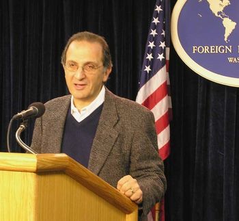 As an author and scholar on Middle East issues and the Arab-American community, Zogby has been invited to testify before a number of Congressional Committees and Executive branch forums,[5] including on the subject of Arab attitudes toward the United States.[6] He has been a guest speaker in the Secretary's Open Forum at the U.S. Department of State. Zogby has also addressed the United Nations and other international forums. He is a member of the Council on Foreign Relations. President Obama appointed Zogby to the U.S. Commission on International Religious Freedom in 2013 and reappointed him to a second term in 2015.[7]