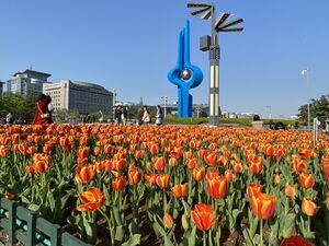 On May 27, 1966, the Cultural Revolution started in Jinan with an article in the local newspaper "Jinan Evening News" (济南晚报) that denounced vice-governor Yu Xiu as a Bourgeois agent within the government.[41] Starting from early June 1966, the schools in Jinan were closed down by strikes as teachers were "struggled against". At the same time, big-character posters started to appear in the city.[41] Red Guards took to the streets of Jinan from late August 1966 onwards, damaging cultural heritage and setting up courts to prosecute perceived enemies of the revolution. In the spring of 1967, the "May 7th Incident" took place: When Zhang Chunqiao and Yao Wenyuan, both later reviled as members of the Gang of Four, visited Jinan to support the Cultural Revolution and its local leader Wang Xiao Yu, fighting erupted in the front of the provincial government between two rival factions of the Cultural Revolution, the "April 22nd Group" and Wang Xiao Yu's "April 28th Group". In the end, more than 10,000 people had been involved in the fighting.[42] On October 11, 1967, the tallest statue of Mao Zedong in Shandong province was erected on the campus of Shandong Normal University.[43] On September 17, 1968, a large assembly of Jinan workers celebrated the arrival of a mango fruit in the "August 1st" Meeting Hall. The fruit had been a gift to the workers in Beijing by Mao and was subsequently passed on to the workers in Jinan. In November 1968, Wang Xiao Yu began to agitate against the local army units in Jinan and Shandong Province. By then unrest due to the Cultural Revolution had severely damaged the city's governmental and industrial infrastructure, with about 80 percent of all government institutions shut down.[44] Large public protests were staged on April 4 and 5, 1969, in which approximately 500,000 people protested the occupation of Zhenbao Island by the Soviet Union.[45] On July 29, 1970, the leadership of the Cultural Revolution passed a resolution to make sweeping changes to the city's educational system: The liberal arts departments of Shandong University were moved to Qufu and combined with Qufu Normal College to form a new Shandong University. The biology department was moved to Tai'an and merged into the Shandong Agricultural College. The rest of the sciences were to form the Shandong Science and Technology University. Shandong Normal University was to be moved to Liaocheng. Shandong Medical College and Shandong College of Traditional Chinese Medicine were to be merged and moved to Tai'an.[46] Shandong University was restored in its original form and the "Shandong Science and Technology University" was abolished in early 1974.[47] The first reversals of Cultural Revolution policies started in early 1971: On May 23 of that year, the Shandong Provincial Museum was reopened after having been closed for about 5 years (since May 1966).[48] In the next year, the Jinan Committee for the Cultural Revolution officially reverted the name changes of four city districts enacted in 1966. During the 6 years between the name change and its reversal, Lixia District had been known officially as "Hongwei", Tianqiao as "Face the Sun", Huaiyin as "East Wind", and Shizhong as "Red Flag".[49] As the Cultural Revolution came to an end, Jinan started to receive visitors from abroad. For example, it was visited by a delegation from the United States Congress between August 8 and 11, 1975.[50] On September 18, 1976, Mao's death was mourned by about 600,000 people at an official service in Jinan's August 1 Square.[51]