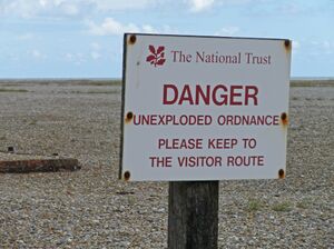 Unexploded ordnance (or UXO) refers to the dysfunction or non-explosion of military explosives.[14] Examples of these include, but are not limited to: bombs, flares, and grenades.[14] It is important to be able to locate and contain unexploded ordnance to avoid injuries, and even possible death, to those who may come in contact with them.[14]