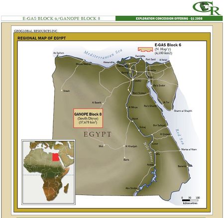 وفي 3 مارس 2008، عرضت جيوگلوبال رسورسز بيع امتيازيها في مصر، شمال حاپي وجنوبي بلوك 8.[2]