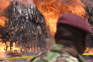 تمثال مكاتيليلي وا منزا، الذي أقيم في 2010 في حديقة "مكاتيليلي وا منزا" (حدائق أوهورو سابقاً)، في نيروبي.