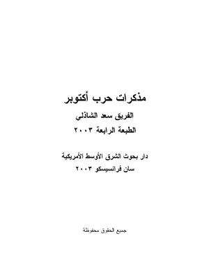 حرب أكتوبر، كتاب لسعد الدين الشاذلي يؤرخ فيه من وجهة نظره الشخصية لعملية العبور المصري لقناة السويس في السادس من أكتوبر 1973 الذي اندلعت معه الحرب العربيه الإسرائيلية الرابعة كان أحد أكبر وأروع العمليات القتالية في تاريخ الحروب. كان الفريق أول سعد الشاذلى رئيسا لهيئة اركان حرب القوات المسلحة المصرية في ذلك الحين وهو من ألمع وأشهر العسكريين المصريين والرأس المدبر وراء هذه العملية. فى هذه المذكرات يقوم بوصف التخطيط والتنفيذ لحرب أكتوبر والأخطاء الجسيمه التي تلت النجاح الإبتدائي المبهر، الصدام ما بين العسكريين والسياسيين، دور الاتحاد السوفييتي، ثم ما بعد الحرب من تصيد كباش فداء. هذا الكتاب يعطى صوره واضحه عن سير العمليات، أداء الأله الحربيه المصريه، مراحل اتخاذ القرار في مصر .