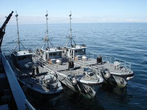 تقطره طائرة هيلوكبتر ويسمى المطرقة يُفجر المجال المغنطيسى الناتج عن المطرقة الألغام المغنطيسية التي ُزرعت تحت الماء.