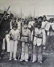 President Castro of Venezuela was the driving force of the war in late-1901, eventually pushing its continuation into 1902.[5] In September 1901, Castro deployed 1,200 Venezuelan troops along with cannons, rifles and a machine gun into Colombia, with Venezuelans comprising a large portion of Liberal troops in border area.[6] During the Battle of Riohacha, Castro sent a gunboat to block Conservative reinforcements from entering the city's harbor and order Venezuelan general José Antonio Dávila to manage Venezuelan troops alongside the Liberals.[6] Errors by Venezuelan forces resulted with Colombian reinforcements landing near Riohacha and countering the joint Liberal-Venezuelan forces, resulting in a mass retreat and a victory for the Colombian army.[6]