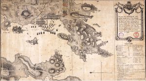 خريطة نيوپورت بمعسكر قوات روشامبو وموقع سرب الفارس ترني، في 1780.