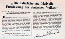 The other side of the above leaflet. This is the text of a speech given by Franklin Roosevelt, translated into German. Click here for a translation.