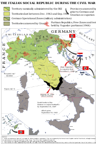 خريطة إيطاليا أثناء الحرب الأهلية، مركزة على الجمهورية الاشتراكية الإيطالية