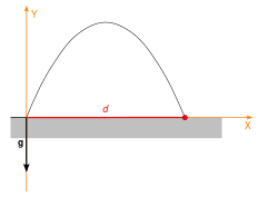 When the surface is flat (initial height of the object is zero), the distance traveled:[4]