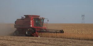 The modern combined harvester, or simply combine, is a versatile machine designed to efficiently harvest a variety of grain crops. The name derives from its combining four separate harvesting operations—reaping, threshing, gathering, and winnowing—into a single process. Among the crops harvested with a combine are wheat, rice, oats, rye, barley, corn (maize), sorghum, soybeans, flax (linseed), sunflowers and canola. The separated straw, left lying on the field, comprises the stems and any remaining leaves of the crop with limited nutrients left in it: the straw is then either chopped, spread on the field and ploughed back in or baled for bedding and limited-feed for livestock.