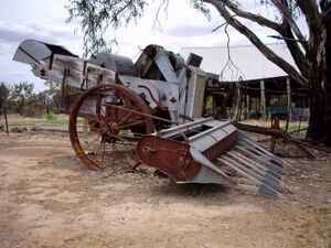 A parallel development in Australia saw the development of the stripper based on the Gallic stripper, by John Ridley and others in South Australia by 1843. The stripper only gathered the heads, leaving the stems in the field.[5] The stripper and later headers had the advantage of fewer moving parts and only collecting heads, requiring less power to operate. Refinements by Hugh Victor McKay produced a commercially successful combine harvester in 1885, the Sunshine Header-Harvester.[6]
