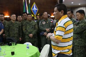 On December 2, 2016, as the military regained control of Butig, the retreating Maute fighters reportedly left a note threatening to behead Duterte and the military.[55] On December 12, 2016, in a speech before the Wallace Business Forum Dinner, Duterte dared the Maute group to attack Marawi, stating: "Because they (the Maute group) threatened to go down from the mountains to burn down Marawi? Go ahead, be my guest. We will wait for you there. No problem."[56][57]