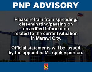 - ^ Cupin, Bea (May 24, 2017). "PNP: Limit Marawi posts to 'what you know, what you see'". Rappler. Archived from the original on July 11, 2018. Retrieved May 24, 2017.