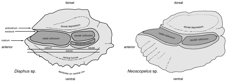and neoscopelid otoliths (Neoscopelus, right side) [9]