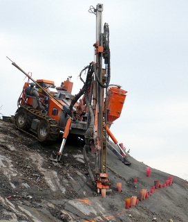 Small mobile drilling rigs are also used to drill or bore piles. Rigs can range from 100 ton continuous flight auger (CFA) rigs to small air powered rigs used to drill holes in quarries, etc. These rigs use the same technology and equipment as the oil drilling rigs, just on a smaller scale.