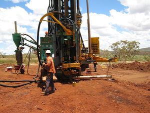 This method of drilling is used to drill the weathered regolith, as the drill rig and steel or tungsten blades cannot penetrate fresh rock. Where possible, air core drilling is preferred over RAB drilling as it provides a more representative sample. Air core drilling can achieve depths approaching 300 meters in good conditions. As the cuttings are removed inside the rods and are less prone to contamination compared to conventional drilling where the cuttings pass to the surface via outside return between the outside of the drill rod and the walls of the hole. This method is more costly and slower than RAB.