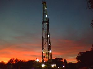 Oil and natural gas drilling rigs can be used not only to identify geologic reservoirs but also to create holes that allow the extraction of oil or natural gas from those reservoirs. Primarily in onshore oil and gas fields once a well has been drilled, the drilling rig will be moved off of the well and a service rig (a smaller rig) that is purpose-built for completions will be moved on to the well to get the well on line.[1] This frees up the drilling rig to drill another hole and streamlines the operation as well as allowing for specialization of certain services, i.e., completions vs. drilling.