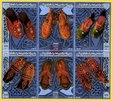 طابع بريدي ليبي عن الصناعات الجلدية التقليدية: أحذية الطوارق.