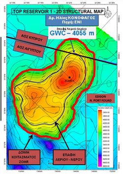 الخزان العلوي لحقل ظهر- خريطة بنيوية ثنائية الأبعاد.[13]