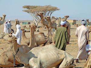 فى مدينة شلاتين سوق كبير لتجارة الجمال، تأتى من السودان متجهة إلى مصر، وعلى مقربة من السوق يقع ميناء للجمال، وهو عبارة عن عدة مصاطب رملية مرتفعة يتم منها تحميل الجمال على سيارات النقل، في هذا الميناء يتولى البشاريون مهمة شحن وتفريغ الجمال، كل سيارة يتولى تحميلها أفراد من عائلة واحدة قد يصل عددهم إلى ثمانية أفراد. أهل منطقة شلاتين يتمتعون بجمال خاص، سمر الوجوه، ممشوقو الجسد، نحيفو البنيان، البشر هنا طيبون يعيشون على الفطرة.. يعيشون على أرض بكر بعيدة عن أى تلوث.