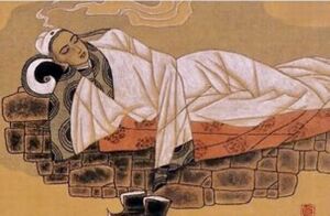 ولكن سرعان ما زحف إليه الهرم، ولم يستطع أن يهزم الشيخوخة والمرض، فنام على فراشه ومر أمامه شريط ذكرياته منذ أول يوم قدم فيه إلى هاندان قبل 50 عاماً، والآن هو على فراشه لا يقوى على الحراك بينما الناس لا تزال تحسده على ملكه وثرائه، فأغمض عينيه ومات راحلاً عن الدنيا. وفي تلك اللحظة انتبه الشاب، فرأى الناسك لا يزال جالساً مكانه وعصيدة الكستناء التي بدأ الناسك بطبخها قبل نوم الشاب لم تنضج بعد. فأدرك أن كل ما مر به كان حلماً ولكنه كان قصيراً جداً لدرجة لم يتصورها. فقال للناسك: لقد رأيت كل شيء في الدنيا بحلوها ومرها ورخائها وشدتها، ولم تنفك عن التقلب ولم تثبت على حال حتى زالت وتلاشت في لمح البصر. لقد خلصتني من جميع شهواتي التي منبعها حب هذه الدنيا، وقام عن الناسك وحياه بأدب وانصرف راجعاً إلى قريته.