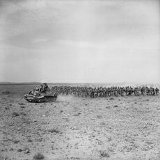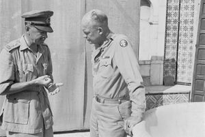The redeployments were complete by the night of 5 May; Anderson had arranged for a dummy concentration of tanks near Bou Arada on the IX Corps front, to deflect attention from the arrival of the 7th Armoured Division in the Medjez sector and achieved a considerable measure of surprise as to the size of the armoured force when the attack began.[78] The final assault was launched at 3:30 a.m. on 6 May by IX Corps, commanded by Lieutenant-General Brian Horrocks who had taken over from Lieutenant-General John Crocker, who had been wounded. V Corps, under Lieutenant-General Charles Walter Allfrey, had made a preliminary attack on 5 May, to capture high ground and secure the left flank of IX Corps. The 4th British and 4th Indian Divisions, concentrated on a narrow front and supported by heavy artillery concentrations, broke a hole in the defences for the 6th and 7th Armoured divisions to pass through. On 7 May, British armour entered Tunis and American infantry from II Corps, which had continued its advance in the north, entered Bizerte.[79]