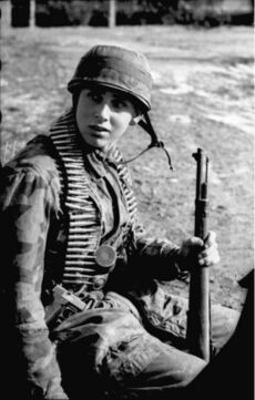 The aim of Operation Ausladung ("Outward thrust") was to gain control of the vital town of Djebel Abiod. This attack by the Manteuffel Division made good progress across the French-held, lightly defended hills between Cap Serrat and the railway town of Sedjenane. Costly counter-attacks on February 27 and 2 March by part of the 139th Infantry Brigade, 46th Infantry Division), No. 1 Commando and supporting artillery delayed the Axis advance.[69] Withdrawals of French battalions in the Medjez area to join XIX Corps, left little opposition to the German occupation of the high ground dominating the town, which was left in a dangerous salient.[70] As a result, Sedjenane was abandoned by the British on 4 March and the 139th Infantry Brigade was pushed slowly back over the next three weeks some 24 km (15 mi) toward Djebel Abiod.
