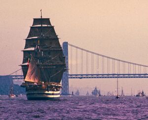 The oldest corderia that is still operating in Italy was established in 1796 in Castellammare di Stabia, in the Kingdom of Naples, to manufacture high-quality cordage from hemp as part of the local shipyard, which was founded in 1773 by royal decree of King Ferdinand IV of Naples.[62] Two notable examples of Royal Italian Navy ships that were later built at said shipyard, and also supplied by the associated ropeyard, were the training ships RNS Cristoforo Colombo and Amerigo Vespucci.[63][64] The RNS Cristoforo Colombo, launched in 1928, was a full-rigged three-masted tall ship that had twenty-six sails made from textile hemp, for a total area of about 2،500 m2 (26،910 sq ft), while the rigging ropes were made of both hemp and Manila hemp.[63] The slightly larger twin ship NS Amerigo Vespucci, launched in 1931 and still in operation with the Italian Navy to the present day, has twenty-four sails made from textile hemp, for a total area of about 2،635 m2 (28،363 sq ft) and a thickness ranging between 2 mm (0.08 in) and 4 mm (0.16 in), while the rigging ropes are currently made of both Manila hemp and nylon.[64]
