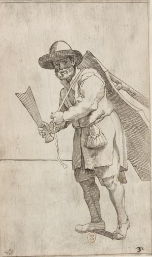 Hemp plants were used in their entirety, namely the roots were used as firewood, the woody stalk fragments were dipped in sulfur to produce matches, the seeds were used as food for livestock, and the fiber was used to make fishing nets, ropes to be used in various agricultural activities, and textiles such as packaging for fine linens, flour sacks, family clothing, and trousseaus for daughters' weddings.[24][75][76] As they are particularly resistant, hemp fibers were also mixed with the more delicate wool to produce mezzalana (i.e. half-wool) fabrics, which were especially suitable for wear-prone textile products.[77] Similarly, mixtures of hemp fibers with either linen or wool, known as pignolato (i.e. pine nuts patterned), were widely used in the area around Ferrara for the production of clothes, as reported by the local writer Riccobaldo in his Sermo de ritibus antiquorum.[35]