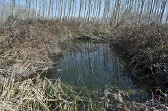 In the bassa Padana (i.e. the lower Po river valley), the maceration tanks were often excavated in the most depressed areas of the farms, in order to facilitate the collection of rainwater through drains, and they were normally used by multiple families.[88] Furthermore, the tanks were also used to draw water for the vegetable gardens, to bathe whole families during the summer, to do their laundries, as well as to farm fish and to raise geese and ducklings.[88] At present, the remains of the surviving maceri are protected by strict regulations and some of these basins are occasionally used by former canapai (i.e. hemp workers) to macerate hemp for educational purposes.[88] Historical retting tanks can also be requalified, such as a former macero in the comune of Nonantola that was turned into a refuge for reptiles and amphibians in 2012, in order to increase the local biodiversity.[92]