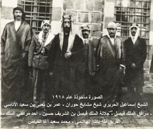 - الشيخ إسماعيل باشا بن إبراهيم الحريري الرفاعي شيخ مشايخ حوران زعيماً لمجلس الثورة.