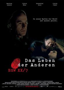 حياة الآخرين (بالألمانية:Das Leben der Anderen) فيلم ألماني، إنتاج 2006 حصل على جائزة الأوسكار 2007 لإفضل فيلم بلغة أجنبية، كما رُشح لجائزة الغولدن غلوب 2007 لإفضل فيلم بلغة أجنبية وحصل على عدة جوائز ألمانية. تدور أحداث الفيلم في الفترة ما قبل سقوط سور برلين في ألمانيا قبل التوحيد حيث كانت تعيش ألمانيا الشرقية الاشتراكية بكل صورها وتفرض على الناس العيش في هذا النظام ولو رغما عنهم. في ظل هذه الظروف بدا بعض المفكرين الناقدين للاشتراكية بالدفاع ضد افكارهم سرا عن طريق المنشورات أو المسرحيات المتضمنة للمفاهيم المعادية للاشتراكية تلميحا. وكان بعضهم يسافر هاربا إلى ألمانيا الغربية تزمرا من النظام وقسوته. في المقابل كانت حكومة ألمانيا الشرقية الاشتراكية تستجوب المفكرين وتخضعهم لعمليات تجسس كاملة في المنزل والعمل. تبدا أحداث الفيلم بتحقيق قوي مع أحد أصدقاء من هربوا إلى ألمانيا الغربية يقوم بالتحقيق دكتور في الجامعة العسكرية والذي يدرس بدوره أساليب التجسس والاستخبارات. يتم تكليف هذا القائد بمراقبة مفكر يغلب الظن على اشتراكه في عمليات تحريض ضد الأفكار الاشتراكية ويبدا هذا القائد بالتجسس عليه وكتابة تقارير عن الكاتب قد تودي به في السجن غير أنه يبدأ وبعد طول مراقبة وتجسس بالاقتناع بما يفعل الكاتب وبما يعتقد ويبدا باخفاء أخباره عن القيادة وتدليس التقارير المقدمة عنه حتى تصل القصة لذروتها عندما يقوم باخفاء اداة الجريمة التي كان ستم القاء القبض على المفكر بسببها وهي الآلة الكاتبة التي كان يكتب بها منشوراته. يتعرض هذا القائد بعد ما ضلل حكومته للفصل من العمل والتحول لعمل غير سري أو مسؤول وهو ساعي بريد. ويظل على هذا الحال أعواما حتى يقع سور برلين وتعلن الوحدة الألمانية. بينما يظل هو ساعيا للبريد. ويكتشف الكاتب بالصدفة أنه كان مراقبا ويذهل من عدم إلقاء القبض عليه برغم ما كان يفعل ضد الحكومة ثم يبدأ بالبحث في الملفات والتقارير التي وضعت في الأرشيف للعامة بعد الوحدة ويكتشف أن القائد المسؤول عن مراقبته هو من أخفى دليل إدانته وأنه من دافع عنه بتغيير محتوى التقارير المكتوبة عنه. يذهب الكاتب للبحث عن القائد فيجده يعمل ساعيا للبريد فيتردد عن كيفية شكره فلا يجد غير أن يؤلف كتابا به إهداء باسمه ويحكي فيه بطولته وهذا بعد أن توقف عن الكتابة منذ سقوط سور برلين.