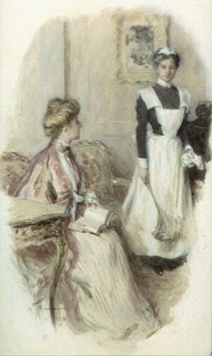 A maid, or housemaid or maidservant, is a female domestic worker. In the Victorian era domestic service was the second largest category of employment in England and Wales, after agricultural work.[1] In developed Western nations, full-time maids are now only found in the wealthiest households. In other parts of the world, maids remain common in urban middle-class households.